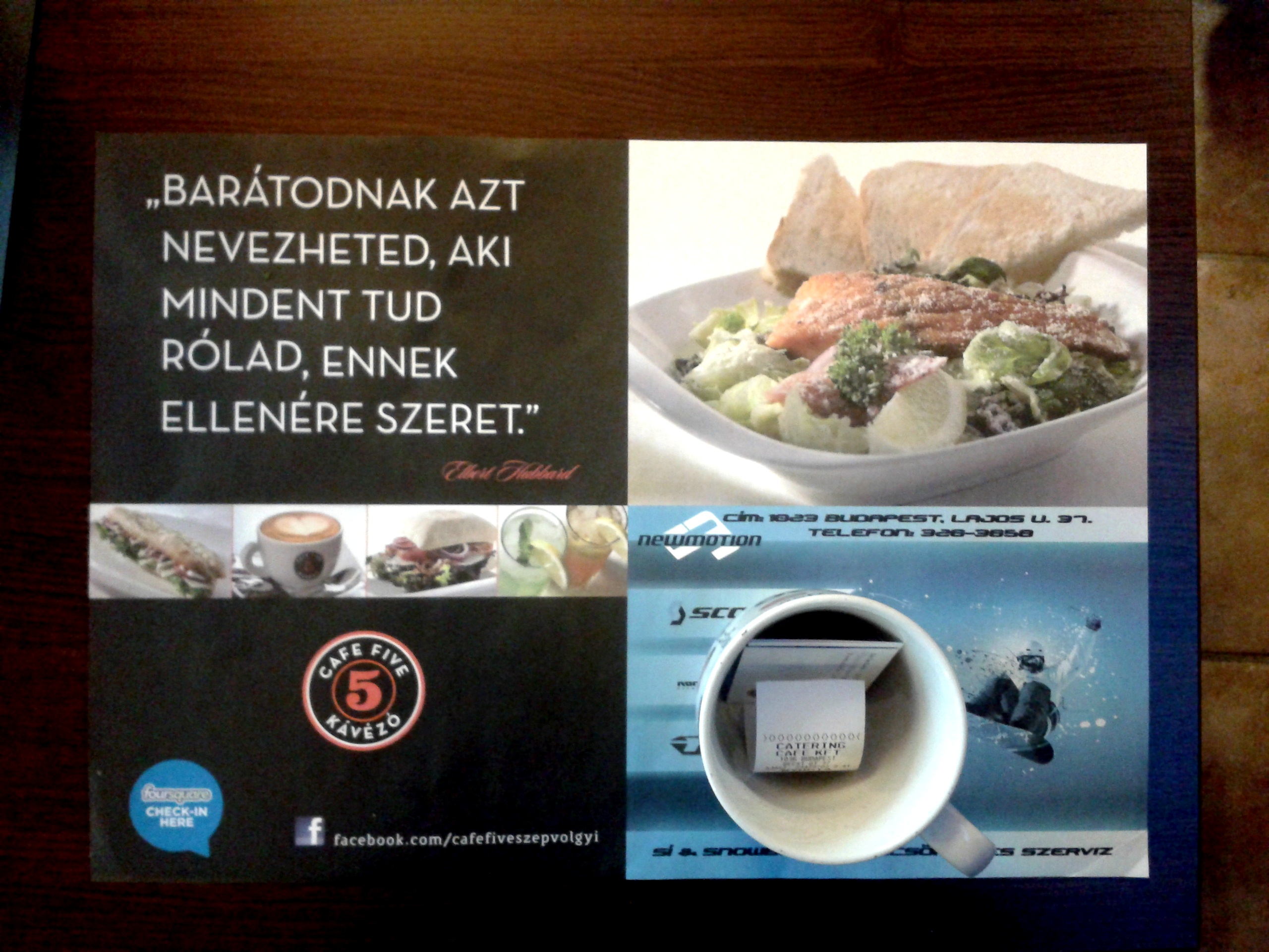 Ahogy pötyögöm a laptopba ezeket a gondolatokat egyik kedvenc kávézómban, most veszem észre az orrom előtt (alatt), hogy még az alátét is erről szól. Gyorsan le is kaptam a mobilommal. (Biztos, hülyének néztek a pincér lányok.)